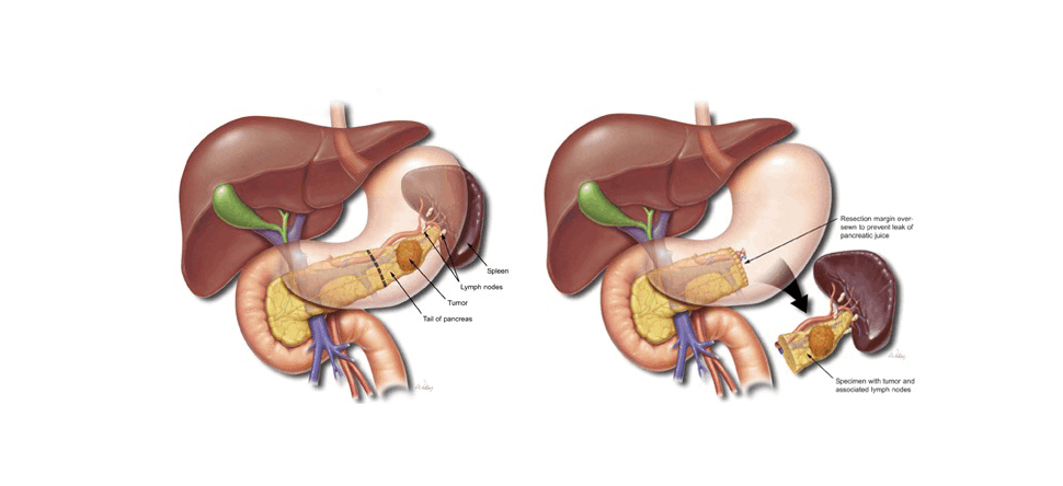 Η περιφερική παγκρεατεκτομή πραγματοποιείται με σκοπό την αφαίρεση όγκων που εντοπίζονται στο σώμα ή την ουρά του παγκρέατος. Θεωρείτε κι αυτή επέμβαση μεγάλης βαρύτητας αλλά είναι σαφώς πιο απλή σε σχέση με αυτή του περιγράψαμε παραπάνω. Σε αρκετές περιπτώσεις μπορεί να πραγματοποιηθεί λαπαροσκοπικά με όλα τα πλεονεκτήματα που αυτό συνεπάγεται. Πολλές φορές χρειάζεται να αφαιρεθεί και ο σπλήνας. Οι επιπλοκές είναι λιγότερο συχνές.