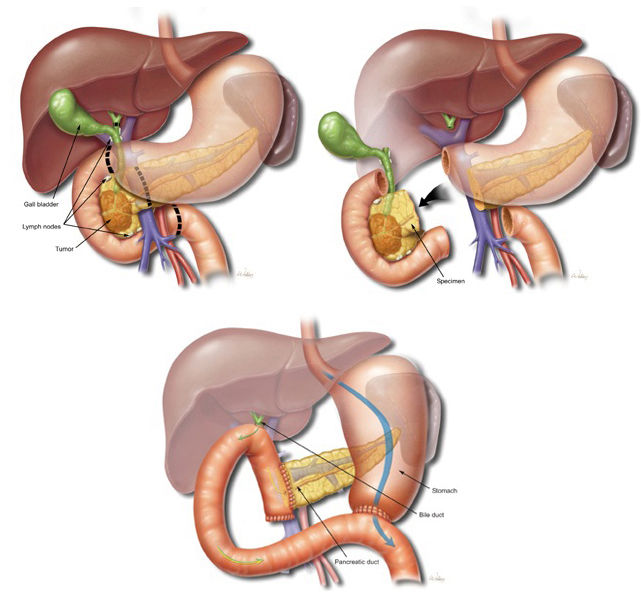 Είναι η πιο συχνή επέμβαση που πραγματοποιείται στο πάγκρεας με σκοπό την αφαίρεση όγκων που έχουν αναπτυχθεί στην κεφαλή του παγκρέατος. Είναι ίσως η πιο σύνθετη και πολύπλοκη επέμβαση που πραγματοποιείται στην κοιλιά. Απαιτεί πολύ καλή γνώση της ανατομίας της περιοχής, υψηλή χειρουργική τεχνική δεινότητα και απαιτητική μετεγχειρητική φροντίδα.